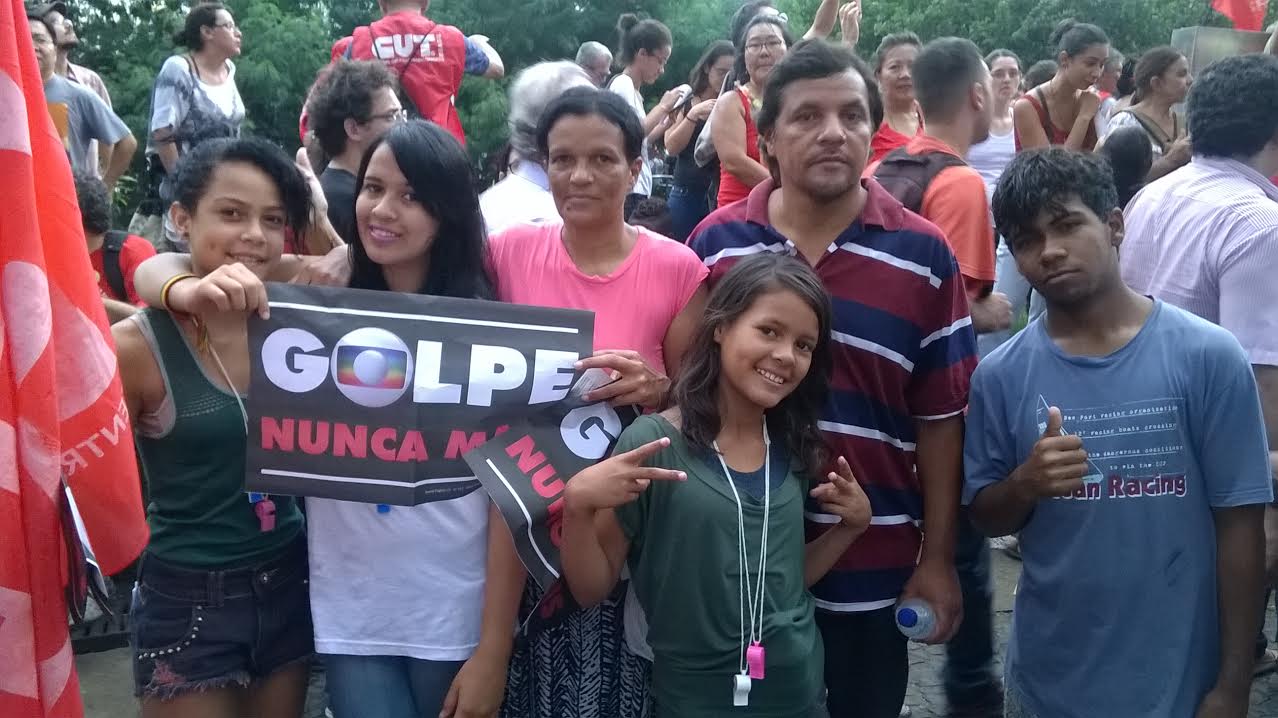 “Somos contra a Globo. Somos contra o juiz Sérgio Moro, contra o Aécio Neves e contra o golpe que está sendo organizado contra a democracia.”